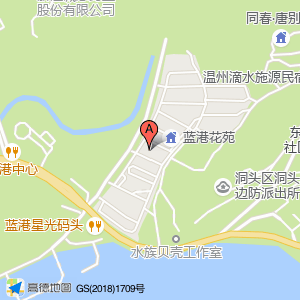 领好超市(蓝港花苑店)位于蓝港花苑(洞头渔港码头蓝港主题酒店楼上五楼)(温州i呆短租公寓)住宿服务相关西南方向154.727米的位置。