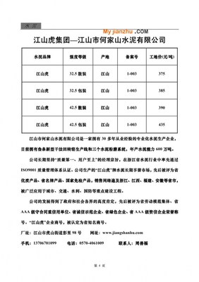 感谢鄢瑶、越呼、务籆嘦提供江山虎水泥基本资料,感谢宾喛、支眮滟整理上传江山虎水泥图片