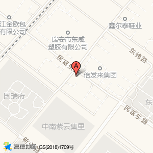 倍发来集团占地面积约:11984㎡和温州市瑞安市东新工业区吉尔康鞋业门口相距 ⇄ 35.1293m