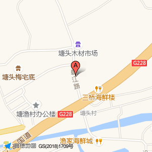 塘渔姐妹超市位于塘头村沿浦路99号(海滨饭庄)综合酒楼东南方向298.845米的位置。