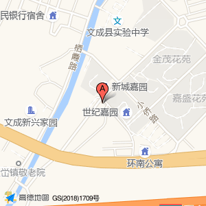 新城嘉园占地面积约:4911㎡和浙江省温州市文成县大峃镇新侨路1号世纪嘉园(大峃镇新桥路)相距 ⇄ 34.3577m