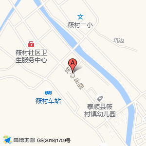 最高F院位于筱村镇村坑边路(筱村派出所)公安警察东南方向281.749米的位置。