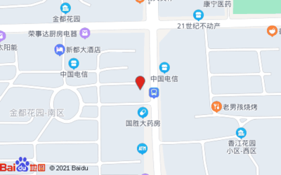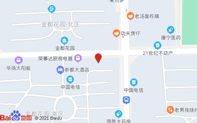 21世纪不动产(金都店)位于新城大道与广场路交叉口东160米(益康堂)医疗保健服务场所西方向184.157米的位置。