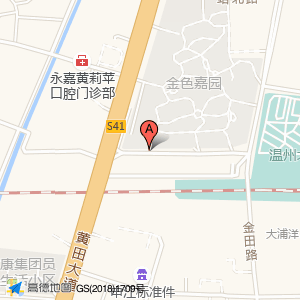 金色嘉园占地面积约:55648㎡和浙江省温州市永嘉县黄田街道金运路金色嘉园(站西路与金田路交叉口西100米)相距 ⇄ 2.502m