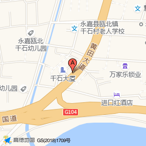 人社服务合作网点(永嘉农商银行黄田支行千石分理处)>>位置示意图 |