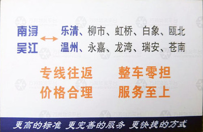 | 所属类型:物流速递 | 地址:浙江省温州市乐清市虹桥镇南阳村村委会(霞康路与南阳北路交叉口西南180米) |