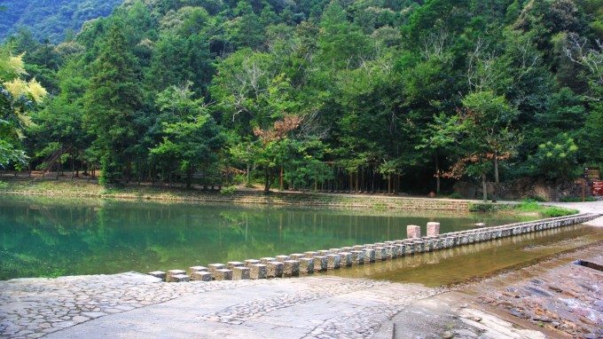 ☸坐轮船来龙湾潭国家森林公园-休息亭在附近港口码头:温州楠溪江石桅岩-渡口|距离:6248m (浙江省温州市永嘉县石桅岩景区内)下船
