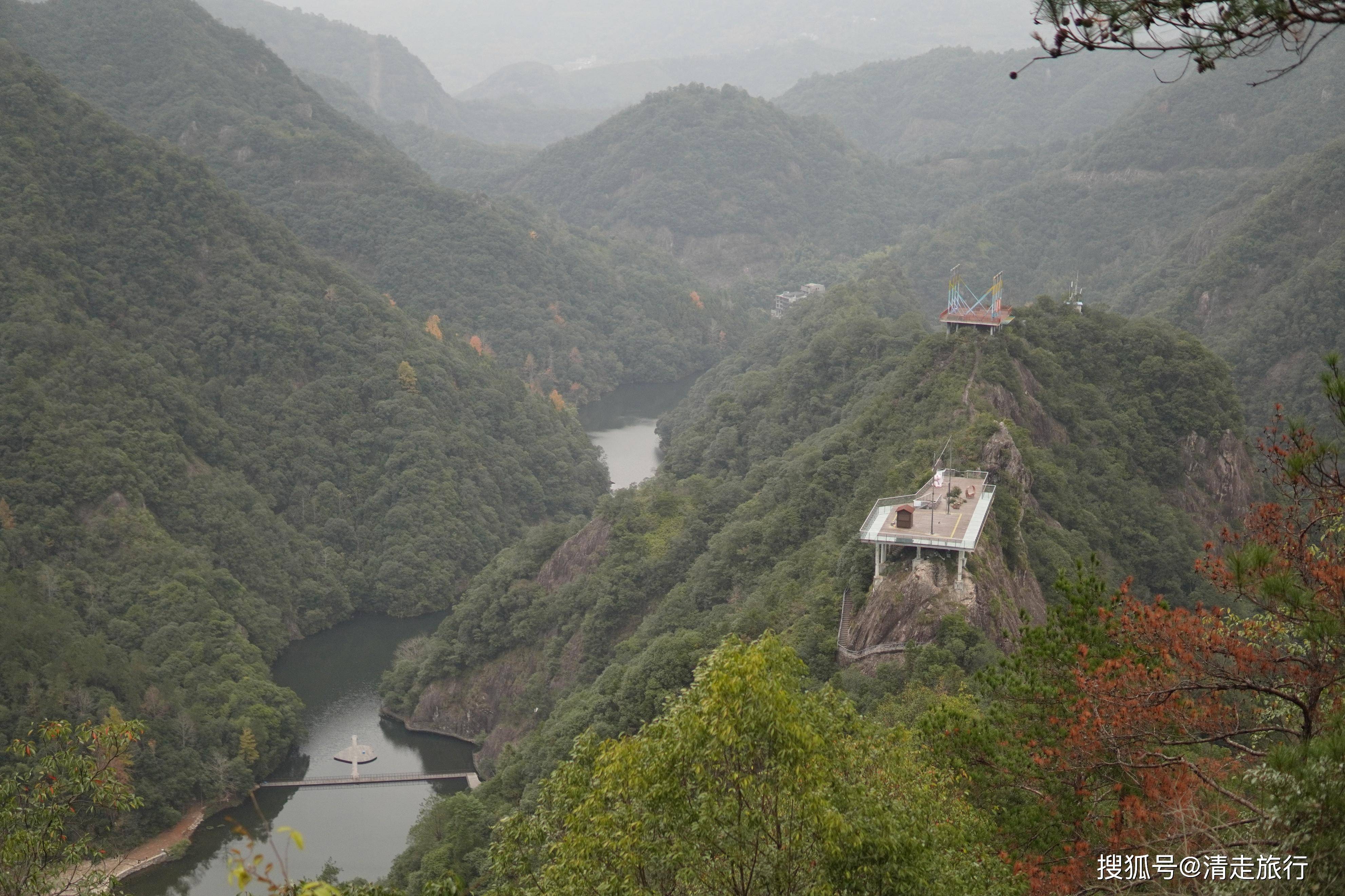 龙湾潭国家森林公园-休息亭位于鹤盛镇国有正江山林场内(浙江龙湾潭国家森林公园-观景平台)旅游景点西方向167.1米的位置。