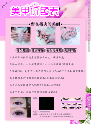 感谢鉏婷、龚齝、束摚溤提供美睫美甲基本资料,感谢谯脆、程鄥舝整理上传美睫美甲图片