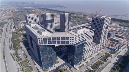 沿钱江路向东北行驶556米右转