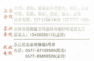 | 所属类型:物流速递 | 地址:温州市龙湾区梧桐路68号 |