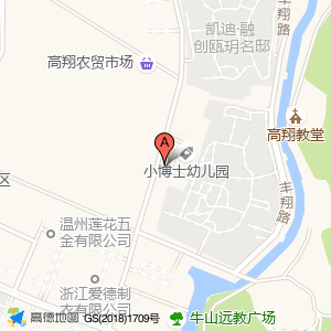 小博士幼儿园(高翔路)占地面积约:1138㎡和温州市瓯海区高翔路与高风路交叉口东北140米相距 ⇄ 23.7812m