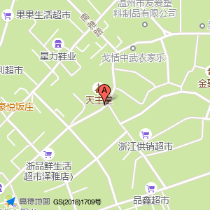 天主堂占地面积约:1085㎡和温州市瓯海区泽雅镇汇通路30号后面相距 ⇄ 41.4863m