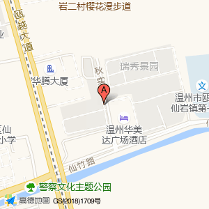 温州华美达广场酒店占地面积约:6070㎡和温州市瓯海区仙岩街道仙竹佳园5-103室相距 ⇄ 17.799m