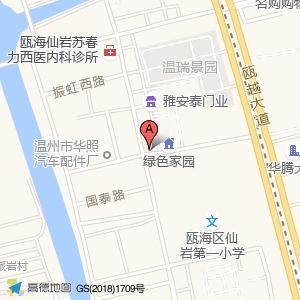绿色家园占地面积约:1367㎡和温州市瓯海区凤四路与友谊西路交叉口东北20米相距 ⇄ 18.3323m