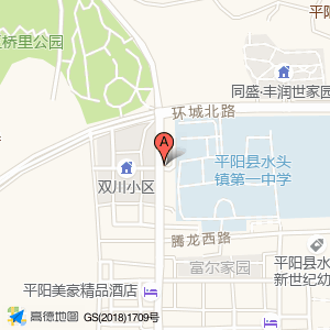 平阳县水头镇第一中学占地面积约:51541㎡和温州市平阳县双川北路与环城北路交叉口南100米相距 ⇄ 20.0056m