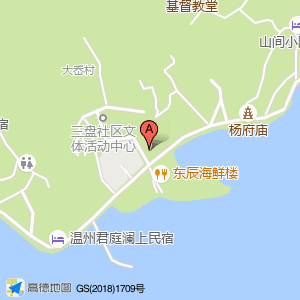 菜鸟驿站位于三盘沿港大道184-1号(温州蓝屿民宿)住宿服务相关东方向195.152米的位置。