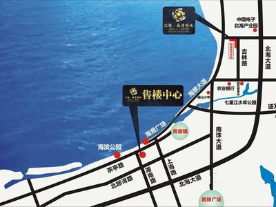 海湾房产售楼中心>>位置示意图 |