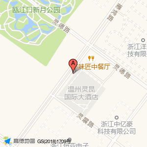 温州灵昆国际大酒店占地面积约:19011㎡和温州市洞头区雁鸿路与灵展路交叉口东北120米相距 ⇄ 4.40555m