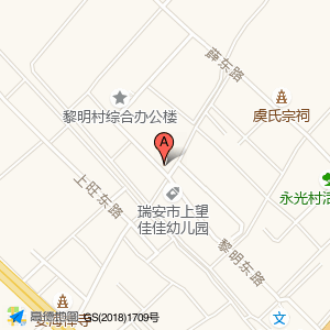 瑞安市上望佳佳幼儿园占地面积约:237㎡和温州市瑞安市黎明东路与沿河北路交叉口北20米相距 ⇄ 39.9099m