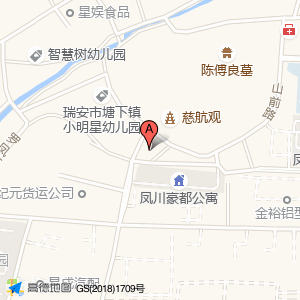 瑞安市一起飞货运中转站位于塘下镇塘下罗凤办事处凤川村山前路111号(瑞安市塘下镇小明星幼儿园)幼儿园西北方向156.433米的位置。