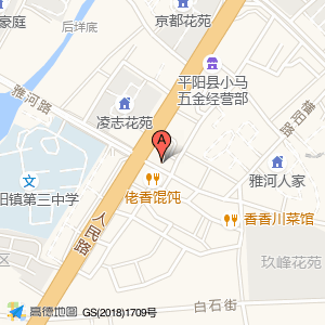 探索位于昆阳镇雅河路515号(阿肥发扁食(平阳县店))中餐厅南方向30.6183米的位置。