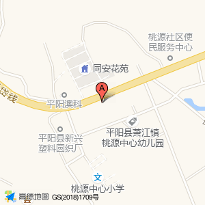 阿伟发艺位于桃源长安路(平阳县萧江镇桃源中心幼儿园)幼儿园东南方向108.632米的位置。