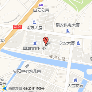 周湖文明小区占地面积约:14329㎡和浙江省温州市瑞安市安阳街道万松花园(安宁路41号)相距 ⇄ 11.6635m