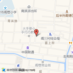 沿阁林大道途径镇中大街向东行驶799米右转