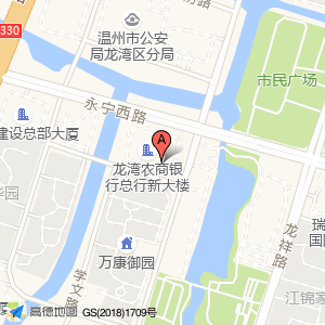 龙湾农商银行总行新大楼占地面积约:9694㎡和温州市龙湾区永中街道龙康路188号-111相距 ⇄ 0m