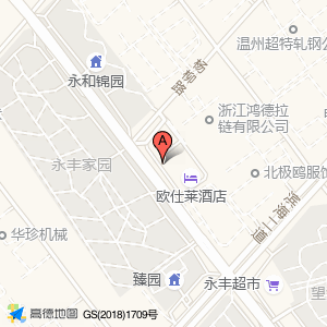 欧仕莱酒店(永强机场店)占地面积约:1092㎡和温州市龙湾区滨海六路与杨柳路交叉口东南80米相距 ⇄ 37.5113m
