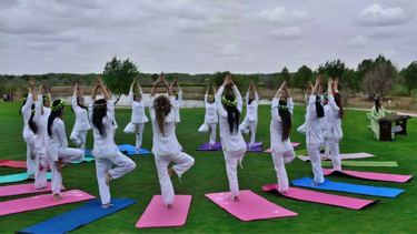 哈他瑜伽位于朝阳南路与商贸路交叉口南20米(御能灸疗馆)医疗保健服务场所西方向195.635米的位置。