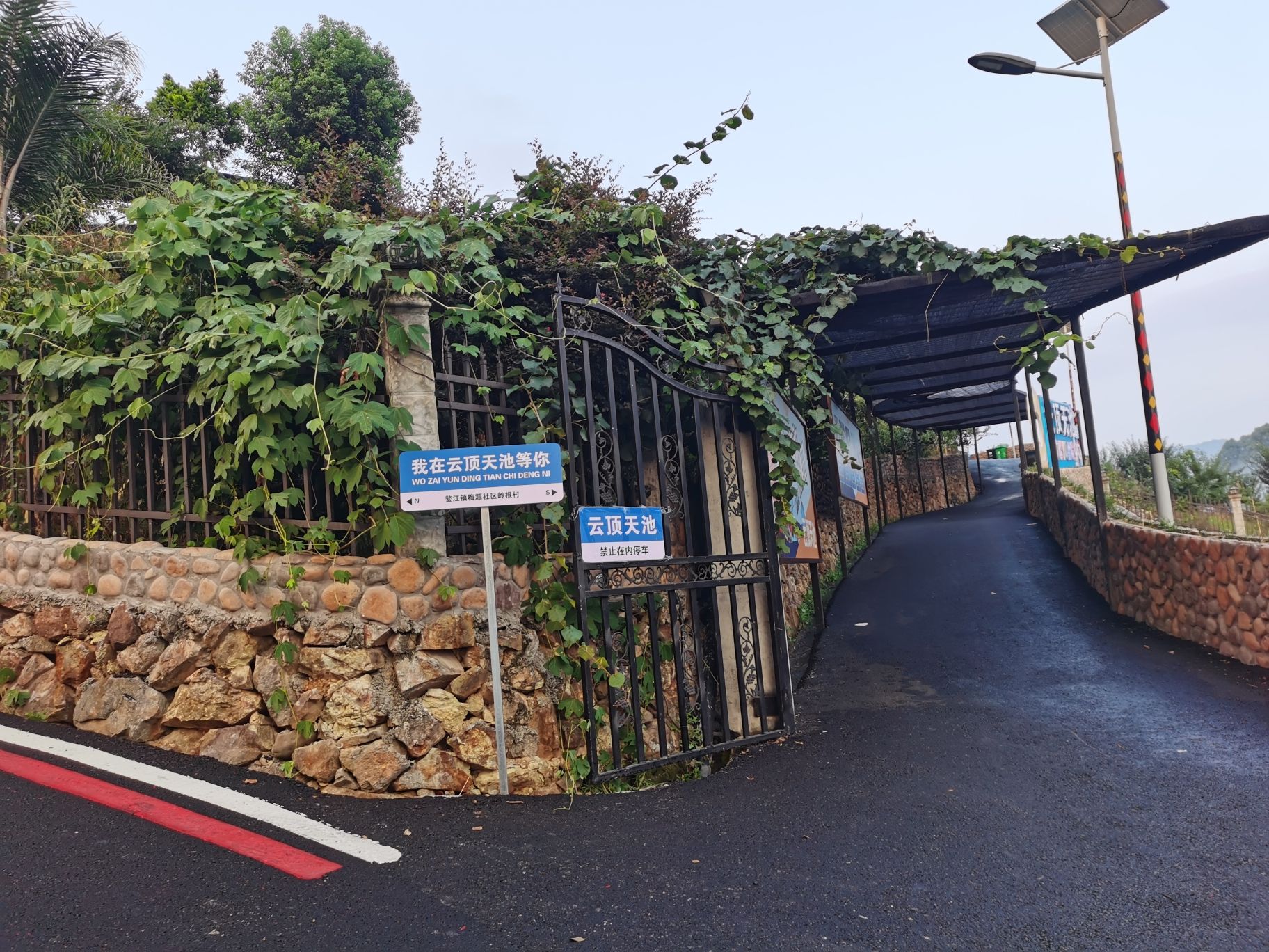 沿104国道向西南行驶1.7千米直行进入隧道