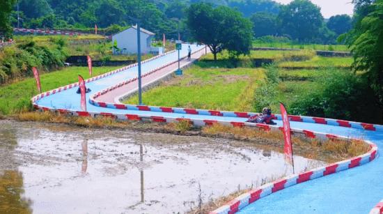 ⓞ沿塘下大道向南骑行2351米左转
