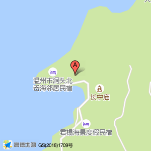 在海边度假别墅位于三盘度假村(北岙街道三盘中路42号)(温州·洞头老舍民宿)住宿服务相关东南方向569.276米的位置。