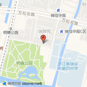 明镜公园占地面积约:64173㎡和温州市瑞安市瑞辰苑三栋西侧201相距 ⇄ 27.762m