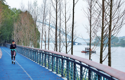 ➤沿滨河路向东南步行106米直行