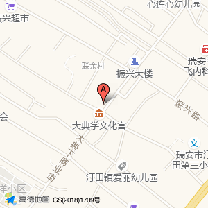 大典学老协办公楼占地面积约:179㎡和温州市瑞安市大典下商业街与河北路交叉口北20米相距 ⇄ 0.148272m