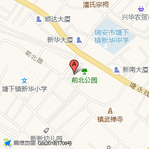 前北公园占地面积约:1668㎡和温州市瑞安市新华南街与前北路交叉口东60米相距 ⇄ 18.5918m