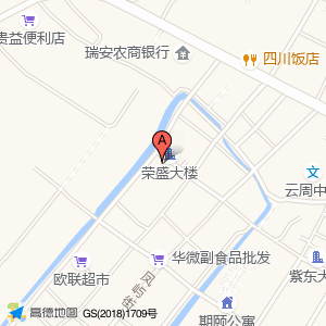 荣盛大楼占地面积约:882㎡和温州市瑞安市飞云镇云周乡繁荣村菜市场相距 ⇄ 15.8659m