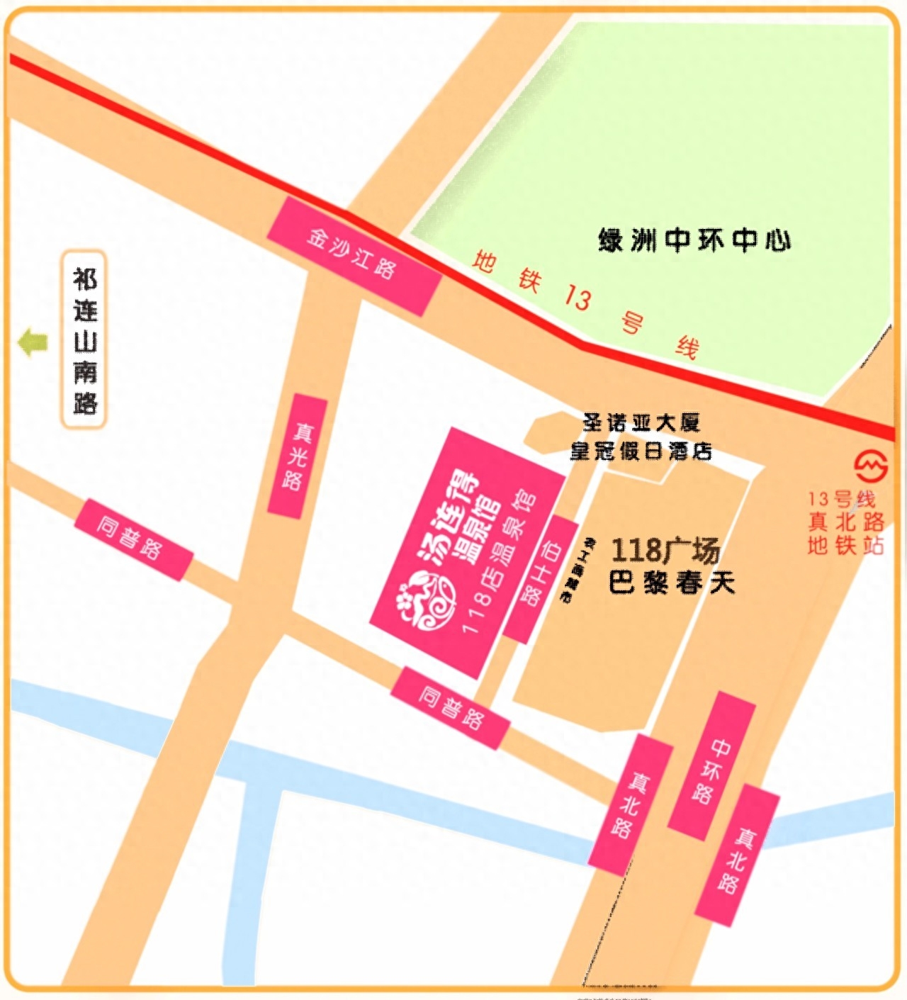 ⓞ沿车站大道向北骑行13米左转
