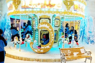 旋转木马(万达广场店)位于平阳万达百货4层(从2号门进)(万达海洋王国(平阳万达百货))水族馆西南方向156.576米的位置。