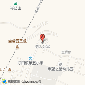 老人公寓位于汀田街道金后村龙凤山(金后五圣观)寺庙道观西方向189.294米的位置。