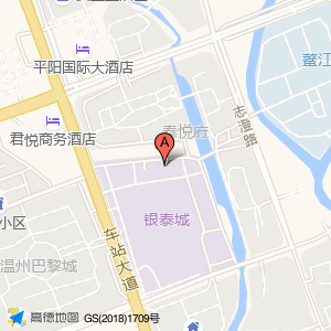 泰悦府占地面积约:46322㎡和浙江省温州市平阳县鳌江镇舞派街舞(银泰城金街店)银泰城(鳌江镇车站大道1188号)相距 ⇄ 41.5832m