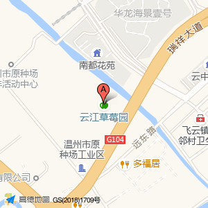 云江草莓园位于飞云街道华海景园7幢103号(春华教育(飞云春华校区))培训机构北方向323.087米的位置。