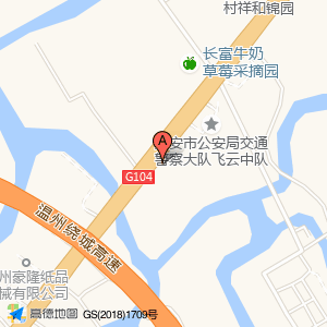 山野围炉煮茶露营基地周边单位有哪些,距离约:123米,**瑞安市公安局交通警察大队飞云中队**地址是浙江省温州市瑞安市104国道,是政府机构及社会团体;交通车辆管理;交通管理机构方面的单位部门。