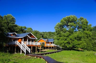 ✈坐飞机来横溪头小木屋就在距离最近的飞机场:温州龙湾国际机场|距离:61467m (浙江省温州市龙湾区机场大道1号)那里落地,再选择打车、地铁、公交车到横溪头小木屋附近