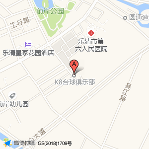 K8台球俱乐部位于北白象镇象南西路207号(乐清市第六人民医院)综合医院东北方向194.306米的位置。