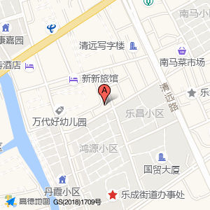 乐成街道丹霞社区卫生服务站位于清远路110号(乐昌小区)住宅小区东方向122.882米的位置。