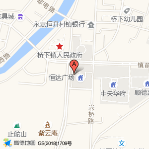 开瑞豪庭酒店占地面积约:527㎡和浙江省温州市永嘉县桥下镇富盈康理疗养生馆恒达广场(永临大道与镇前街交叉口东南80米)相距 ⇄ 36.562m